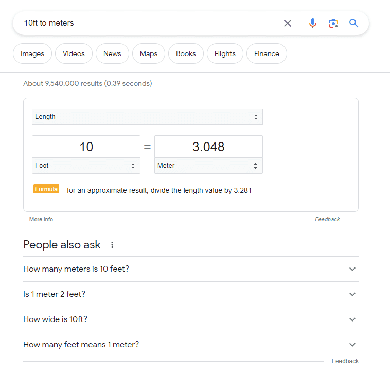 在這種情況下,解決方案會(huì )顯示在 SERP 的最前面。下面是一個(gè)單位轉換器示例